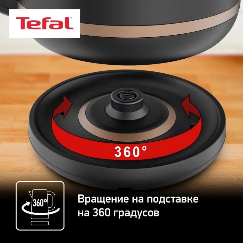Вращение на подставке на 360 градусовОснование чайника вращается на 360 градусов, обеспечивая легкое и удобное перемещение под любым углом, а также имеет контрастное цветовое кольцо – для более легкого размещения.