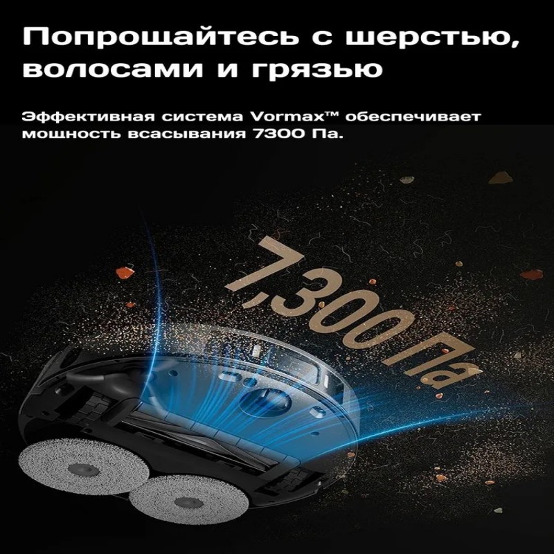 1 x Робот-пылесос, 1 x Базовая станция, 1 x Боковая щетка, 2 x Губка для влажной уборки, 2 x Держатель для губки, 1 x Кабель питания, 1 x Мешок для мусора, 1 x Кисть для очистки, 1 x средство для очистки, 1 x Инструкция
